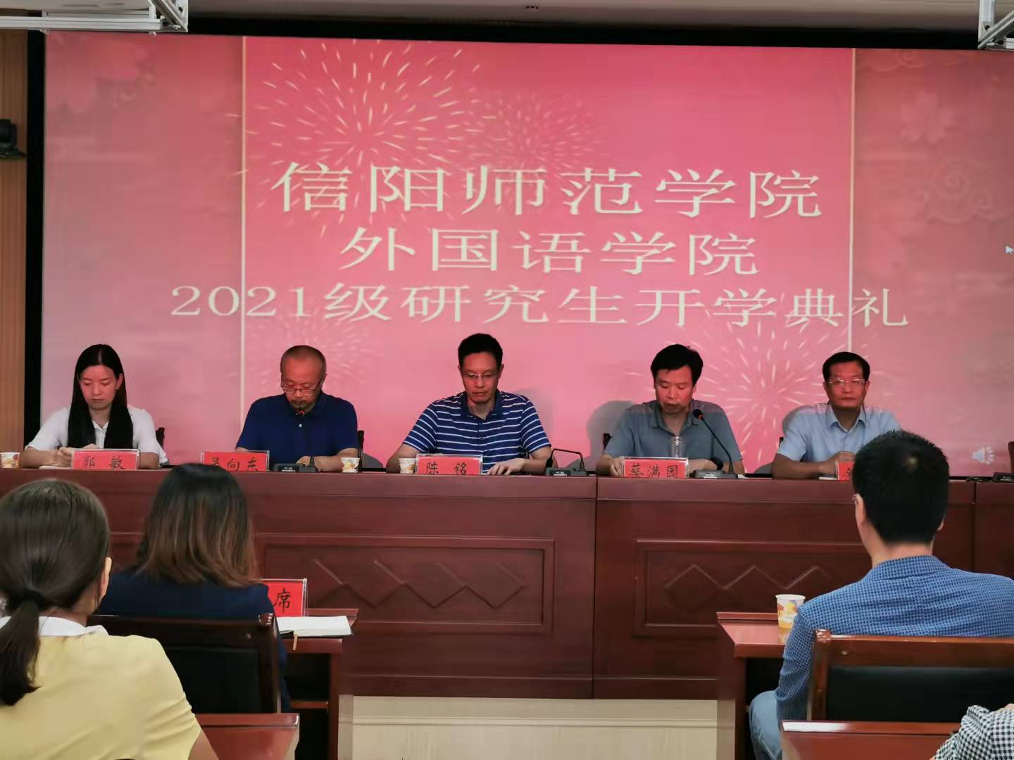 9月27日,beats365官方唯一入口2021级研究生新生开学典礼在人文楼607会议室举行。党委书记陈铭、经理蔡满园、副经理吴向东、余永锋、郭敏与beats365官方唯一入口导师和全体2021级研究生新生参加了典礼。典礼由吴向东主持。