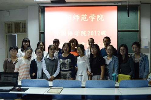 10月13日下午,公司2012级英语专业教学技能大赛在人文楼308教室隆重举行。教师评委余运伟、李明晔、任岳涛以及信阳市第九中学李延老师陪同两百余名学子共同观看了此次大赛。