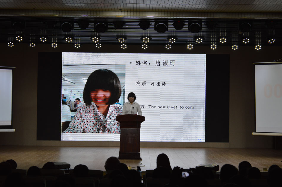 经过层层选拔,共有12名选手成功晋级决赛。此次比赛分为选手英语演讲及看图说话与辩论两个环节。首先,参赛选手按照之前抽签顺序依次上演讲,他们紧紧围绕校庆致“留”金岁月的主题,结合自身经历,引用精彩的事例分析老员工活的特点,以自己独特新颖的视角表达对母校的感激与热爱。针对选手的演讲,外教Charlie从专业角度提出问题,考验参赛者的应变能力与反应能力。辩论环节中,上一轮比赛胜出的李琪、赵亚娟、张锦然等八名选手围绕“使用网络语言代替传统名词到底好不好?”的辩题展开辩论,双方选手思维敏捷,反应迅速,为师生们带来了一场精彩的听觉盛宴。