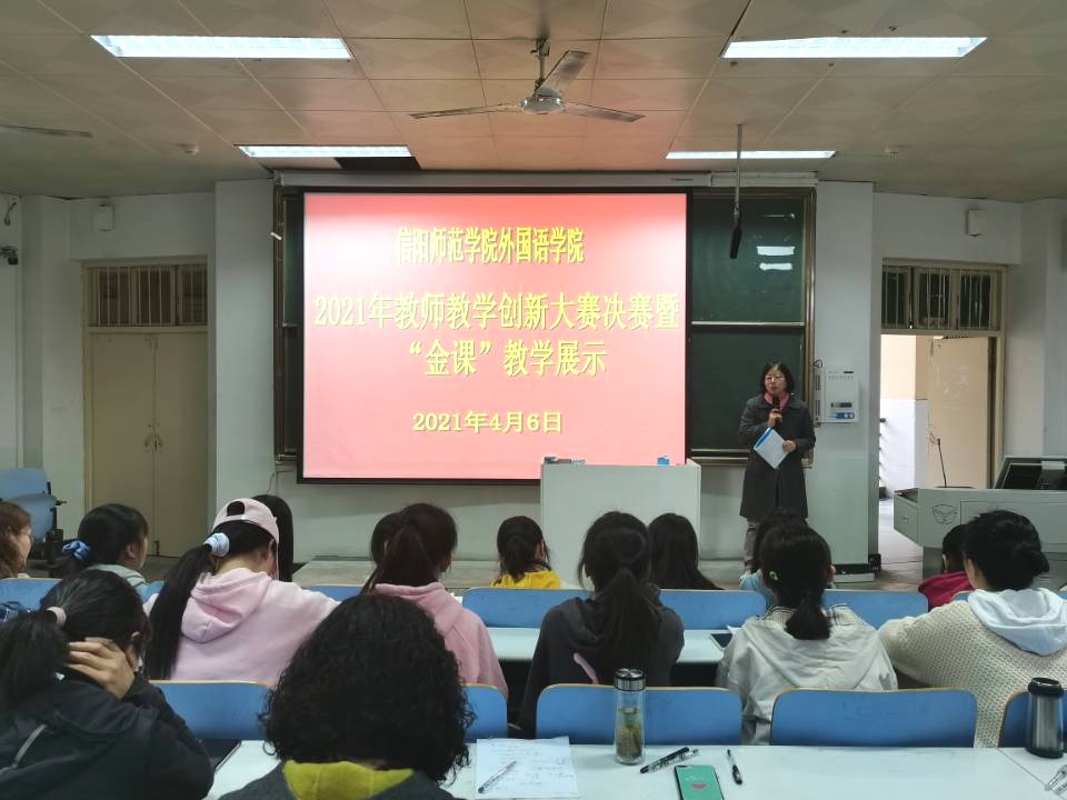 4月6日下午,beats365官方唯一入口在人文楼308教室成功举办2021年教师教学创新大赛决赛暨“金课”教学展示活动。公司党委书记周学红,经理蔡满园,党委副书记柏孟仁,副经理姚光金,评委余运伟,李明晔,陈顺黎,傅翀,宣军磊,刘海军,任芳、教务办老师们参与此次活动。全体专任教师和部分英语专业员工观摩了比赛。