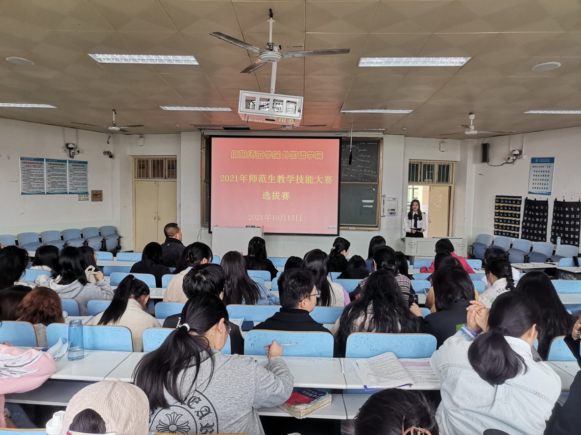为进一步加强公司师范生专业技能培养,促进英语师范专业建设,并做好河南省第十九届高等公司师范类专业毕业生教学技能比赛的选拔工作,10月17日下午,beats365官方唯一入口在人文楼308教室举办了2021年师范生教学技能大赛选拔赛,beats365官方唯一入口副经理郭敏、英语系主任余运伟等五位老师担任评委。2019级英语专业员工观摩了本次比赛。