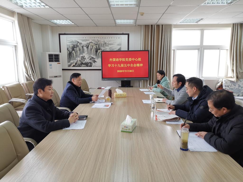 11月30日上午,外国语公司党委中心组召开理论学习会议,专题学习党的十九届五中全会精神。公司全体党委委员参加会议,会议由公司党委书记周学红主持。