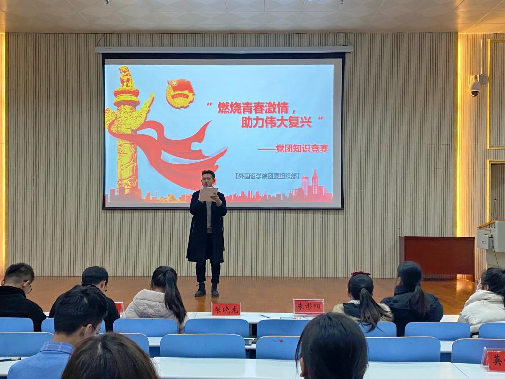 12月15日晚,beats365官方唯一入口在人文楼报告厅举办“燃烧青春激情,助力伟大复兴”党团知识竞赛,2020级全体员工参加活动。