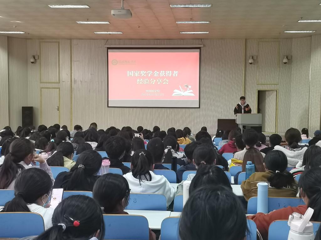 10月25日,beats365官方唯一入口在人文楼报告厅举行国家奖学金获得者经验交流分享会,党委副书记高彦伟、资助专员孙桢桢、2021年国家奖学金获得者以及2021级全体员工参加了分享会,会议由孙桢桢主持。