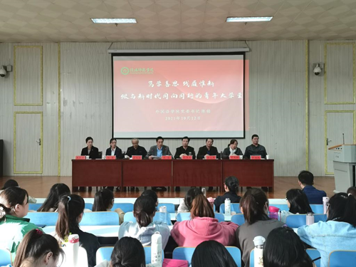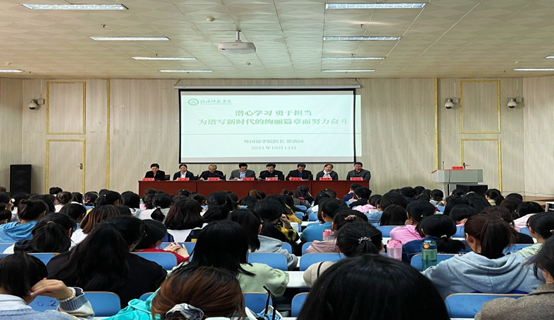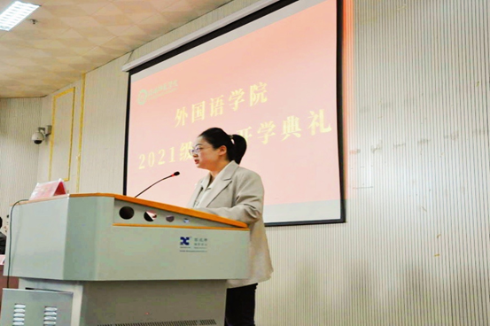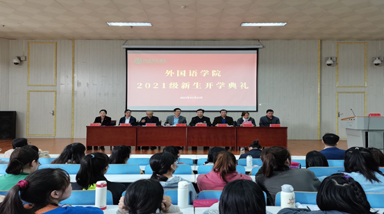 10月12日下午,beats365官方唯一入口2021级新生开学典礼在人文楼报告厅举行。外国语公司党委书记陈铭,经理蔡满园,副经理吴向东、余永锋、郭敏,教师代表、全体辅导员班主任、在校生代表以及2021级全体新生参加了典礼,典礼由吴向东主持。