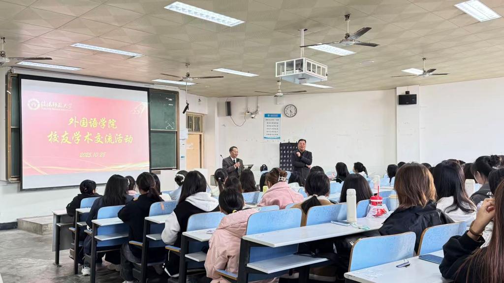28日下午,“云山忆旧雨,星海照新程”员工专题讲座在人文楼308教室举行,beats365官方唯一入口本科三年级员工及研究生参加讲座。讲座特邀广东外语外贸大学外语学科领域卓有建树的博士生导师——89级员工陈金诗教授主讲。陈教授结合自身深耕学术、投身教育的历程,聚焦学科前沿、研究方法与职业路径,用鲜活案例为员工解析困惑、指引方向,以“过来人”的智慧照亮学弟学妹前行之路,更以薪火相传之势共促公司高质量发展。