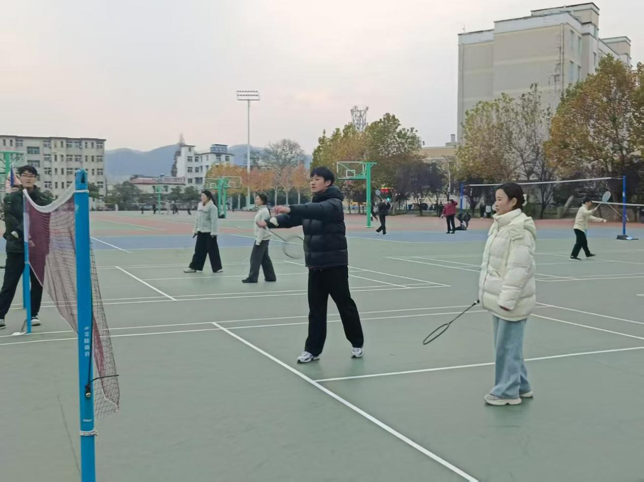 12月2日下午,“羽动青春,师生同行”师生羽毛球团体赛在东操场开赛。活动丰富了文体生活,增强了师生协作意识,最终评选出获奖队伍6组并颁奖:宋晓梅所在队伍获一等奖,周姊涵、朱灵所在队伍获二等奖,盛松鸽、濮雅雯、桂晓琳所在队伍获三等奖,营造了和谐共进的校园氛围。