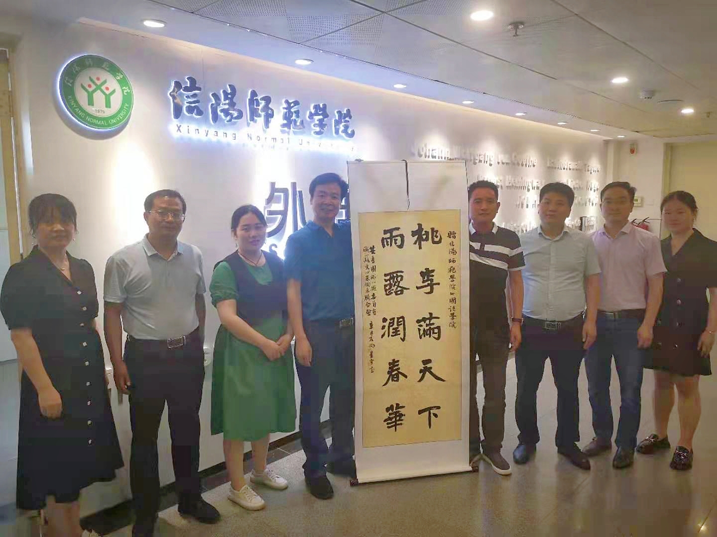 李红俊一行代表共青团淅川县委员会和淅川县爱心志愿者联合会给公司送来了锦旗和书法作品,以感谢公司员工周泽敏在淅川县承担的团中央易地扶贫搬迁安置社区治理·光明社区示范项目中,积极投身志愿服务活动,为巩固脱贫攻坚、推动乡村振兴所作的贡献。李红俊一行代表共青团淅川县委员会向公司发出暑期“三下乡”社会实践邀请,希望更多的师院学子能够参与到志愿服务活动中去,为推动乡村振兴贡献力量。
