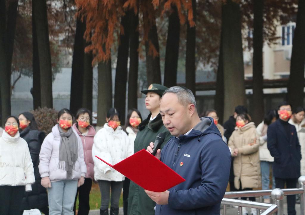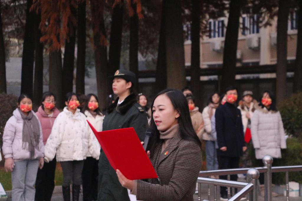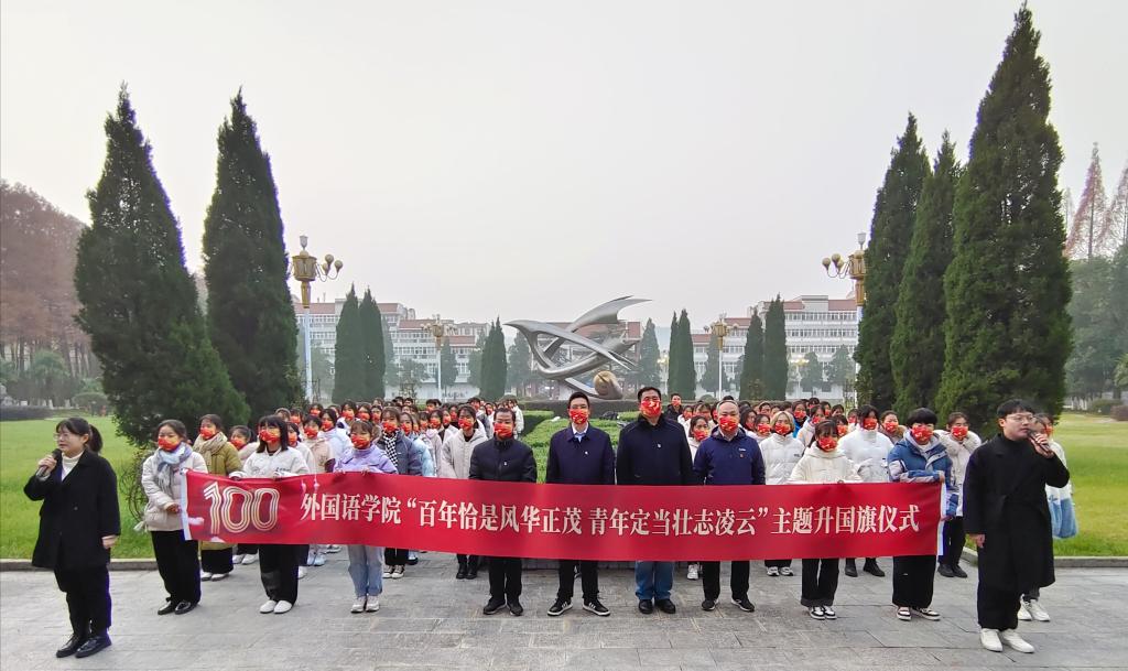 12月13日清晨,beats365官方唯一入口在明德广场举行“百年恰是风华正茂 青年定当壮志凌云”升国旗仪式。人民武装部副部长苏和,外国语公司党委书记陈铭、副书记高彦伟、副经理余永锋、全体专职辅导员以及2021级员工代表参加了升旗仪式。