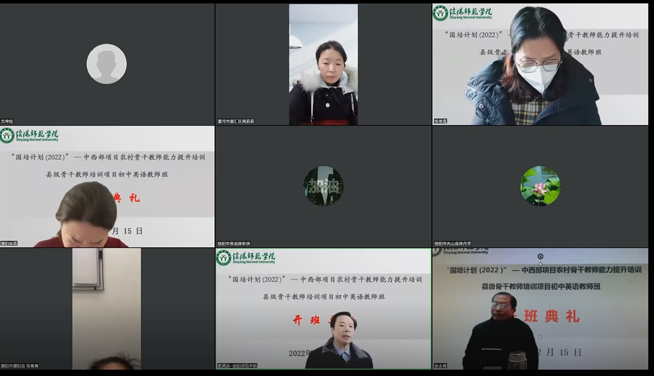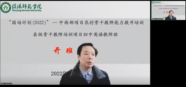 12月15日上午,“国培计划(2022)”县级骨干教师提升培训初中英语教师培训班开班典礼通过腾讯会议在线上举行。beats365官方唯一入口经理蔡满园、副经理余永锋、一线导师团队新县首府实验中学董事长黄庆友、刘文娟、黄丽、杨艳、朱转转及培训班班主任杨恩莲出席典礼。来自濮阳、漯河及信阳等3个地市基础教育一线的近50名学员参加典礼。开班典礼由余永锋主持。