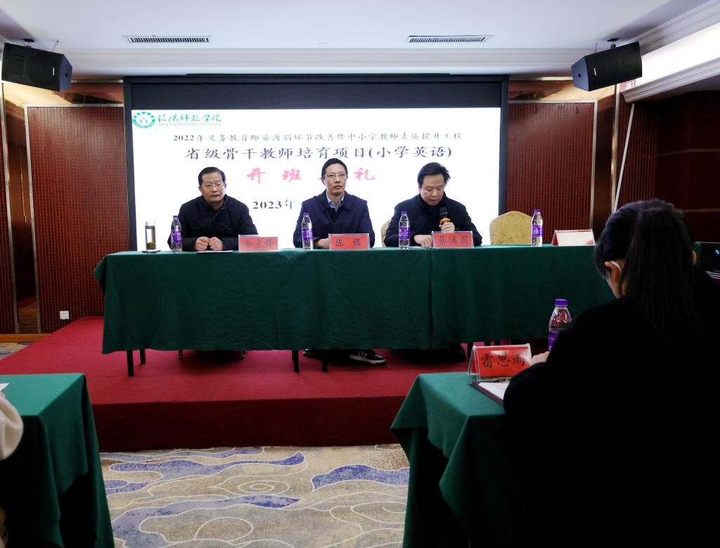 2月27日上午,2022年义务教育团队薄弱环节改善暨中小学教师素质提升工程升级骨干教师培育项目(初中/小学英语)开班典礼在维也纳国际酒店五楼贝多芬厅举行。外国语公司党委书记陈铭,经理蔡满园,副经理余永锋,小学英语班班主任宋冬梅、曹慧琳,初中英语班班主任雷思雨、黄艳文出席典礼,来自驻马店、济源、漯河、信阳、南阳等五个地区市基础教育一线的118名学员参加典礼。开班典礼由余永锋主持。