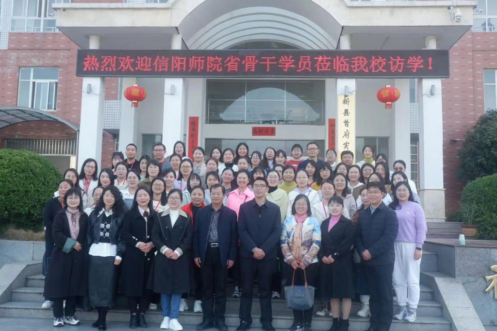 3月6日,beats365官方唯一入口组织“省培计划”中小学英语骨干教师培训学员赴新县开展“同课异构”课堂教学观摩活动。beats365官方唯一入口副经理余永锋,国培项目首席专家余运伟教授,小学英语班班主任曹慧琳、初中英语班班主任黄艳文,中原名师培育对象黄庆友“红色园丁”初中英语名师工作室全体成员以及参训学员参加活动。