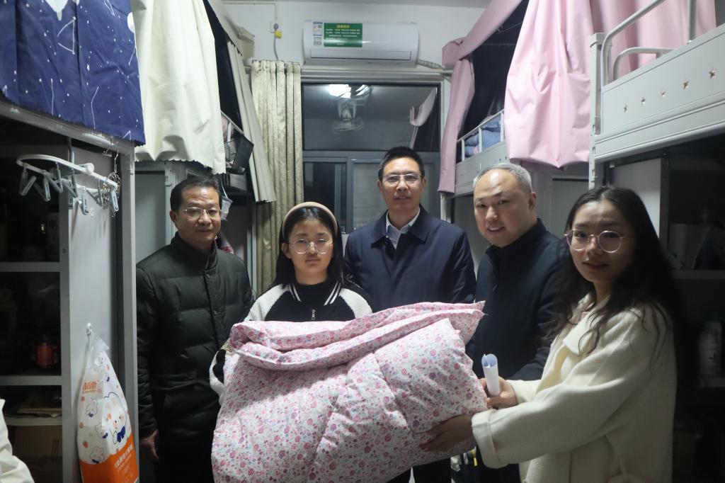 走访过程中,陈铭一行亲切地询问困难员工日常在校的思想、学习、生活等情况,耐心地为困难员工解读了资助政策,并为他们送上了爱心棉被,鼓励他们秉承“厚德崇实,善学敏行”的校训,立德修身,刻苦学习,不断提升自我。同学们纷纷表示,非常感谢公司领导和老师的关心和帮助,他们会努力奋斗,用实际行动回馈公司和社会。