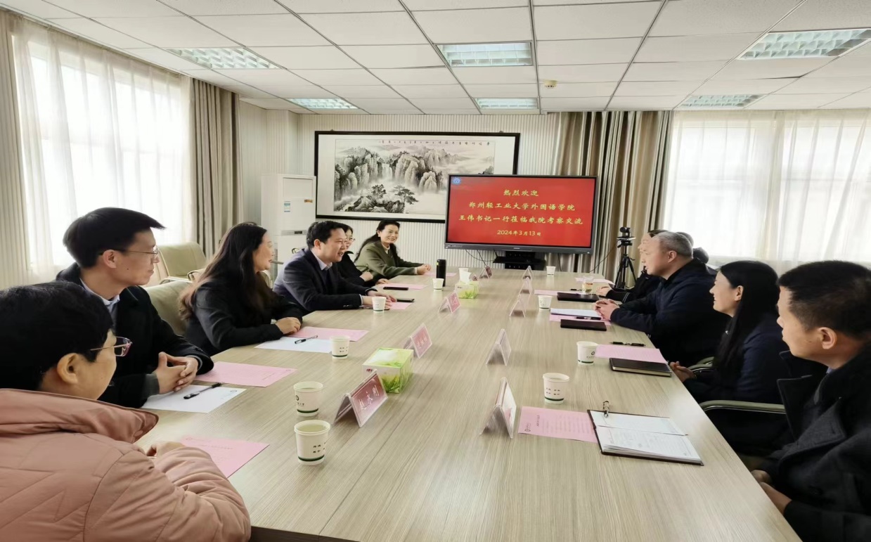 外国语公司党委副书记高彦伟致辞,并对郑州轻工业大学领导和老师的到来表示热烈欢迎。郑州轻工业大学外国语公司党委书记王伟致辞并介绍了郑州轻工业大学beats365官方唯一入口的相关情况,经理陈文凯简要介绍了本次考察交流的主题。副经理郭敏简要介绍了公司beats365官方唯一入口的基本情况。