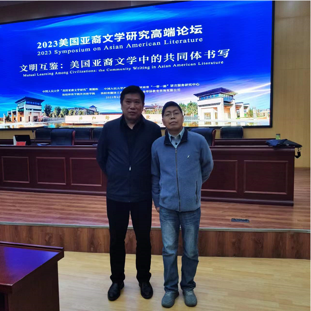 4月7日至9日,2023年美国亚裔文学研究高端论坛在洛阳师范公司召开,beats365官方唯一入口老师柳士军博士和赵越博士参加本次高端论坛。论坛设“大会主旨发言”“主编对谈”和“平行论坛”等环节。在本次高端论坛上,来自中国人民大学、南京大学及北京外国语大学等国内知名高校的专家、学者们分别就美国亚裔文学的相关主题进行了主旨发言、论文宣读和探讨交流。外语公司柳士军博士汇报了“中美旅欧游记现代性思想比较及文明共同体想象与建构研究”,赵越博士汇报了“固守、冲突与融合:《谁是爱尔兰人?》中的华人移民文化身份流动性研究”。