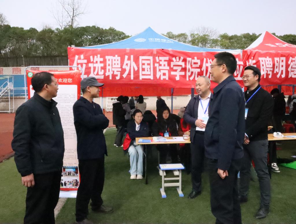 3月29日,河南省毕业生就业市场豫南分市场暨365官网体育2025届毕业生春季双向选择洽谈会在公司西操场隆重举行。外国语公司党委书记陈铭,党委副书记高彦伟,副经理余永锋,翻译中心主任曹万忠,就业秘书赵鹏举及2025届全体毕业生参加了双选会。