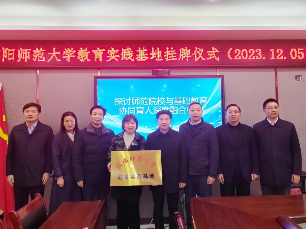 2023年12月5日下午,beats365官方唯一入口与平桥区第五小学举行教育实践基地挂牌仪式。平桥区政法委书记程岗、平桥区教体局局长彭传涛、公司副董事长江玉安、教务处副处长周学勇、外国语公司党委书记陈铭、经理蔡满园、副经理郭敏及部分师生代表参加了本次挂牌仪式。仪式由平桥区第五小学教务主任魏开芳主持。