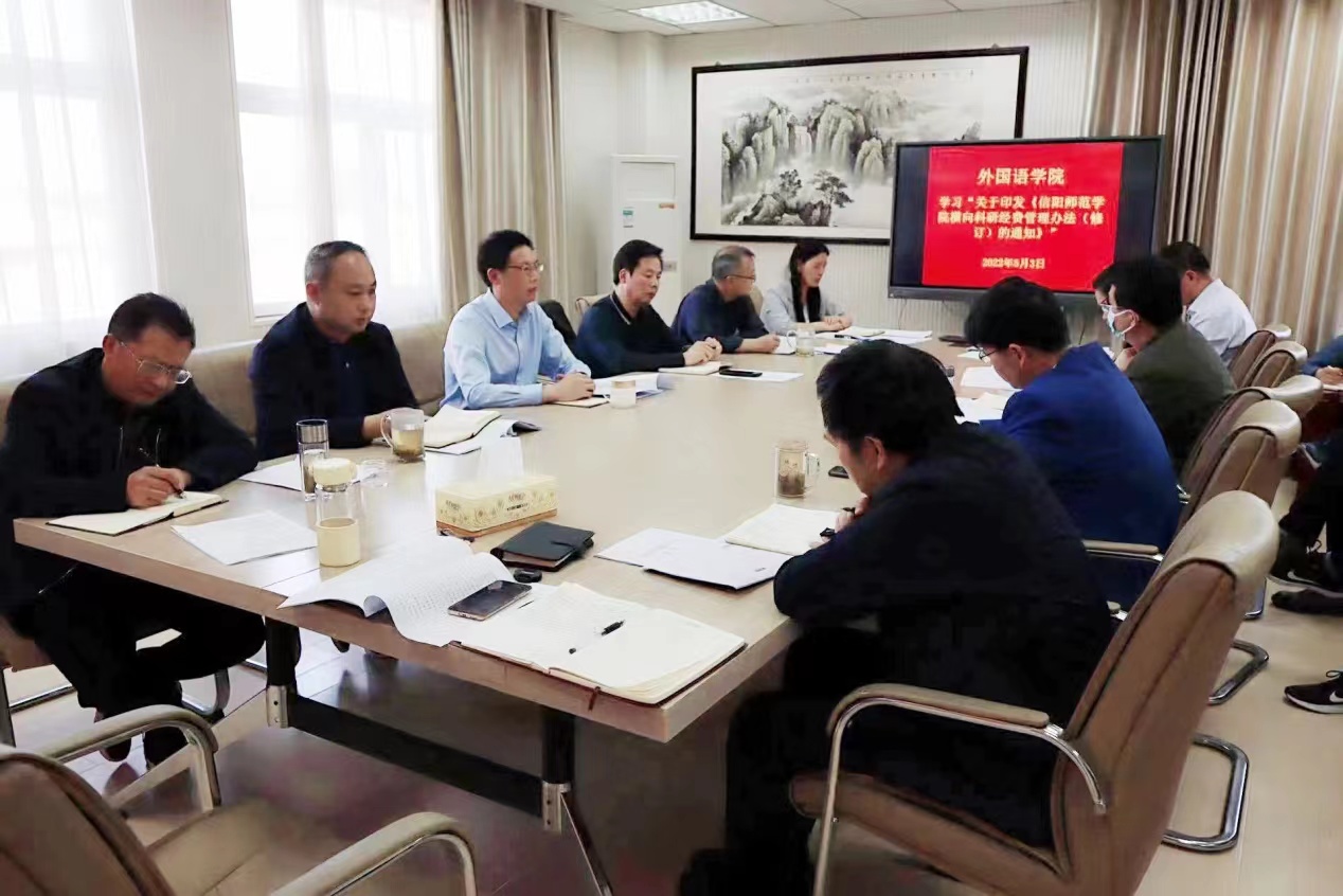 2022年5月3日下午,beats365官方唯一入口组织教师在人文楼5楼会议室学习了“关于印发《信阳师范公司横向科研经费管理办法(修订)的通知》”的座谈会。beats365官方唯一入口全体领导班子成员、各基层教学组织负责人及承担横向科研项目的教师参加了本次座谈会。座谈会由副经理郭敏主持。