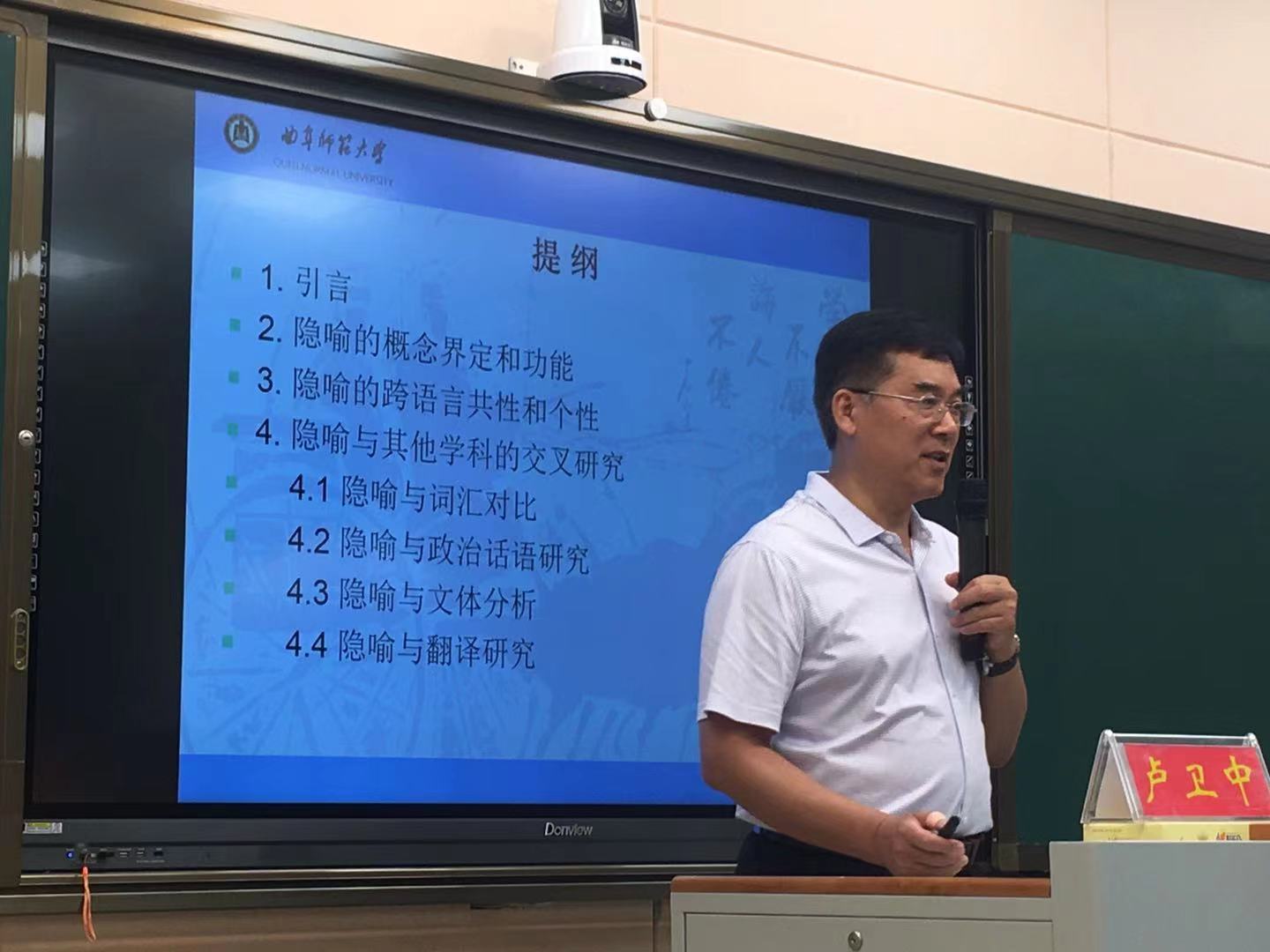 6月29日上午,应beats365官方唯一入口邀请,曲阜师范大学翻译公司经理卢卫中教授在人文楼603教室作了题为“隐喻的跨学科研究”的学术报告,beats365官方唯一入口全体研究生和部分教师聆听了报告。报告会由beats365官方唯一入口经理蔡满园主持。