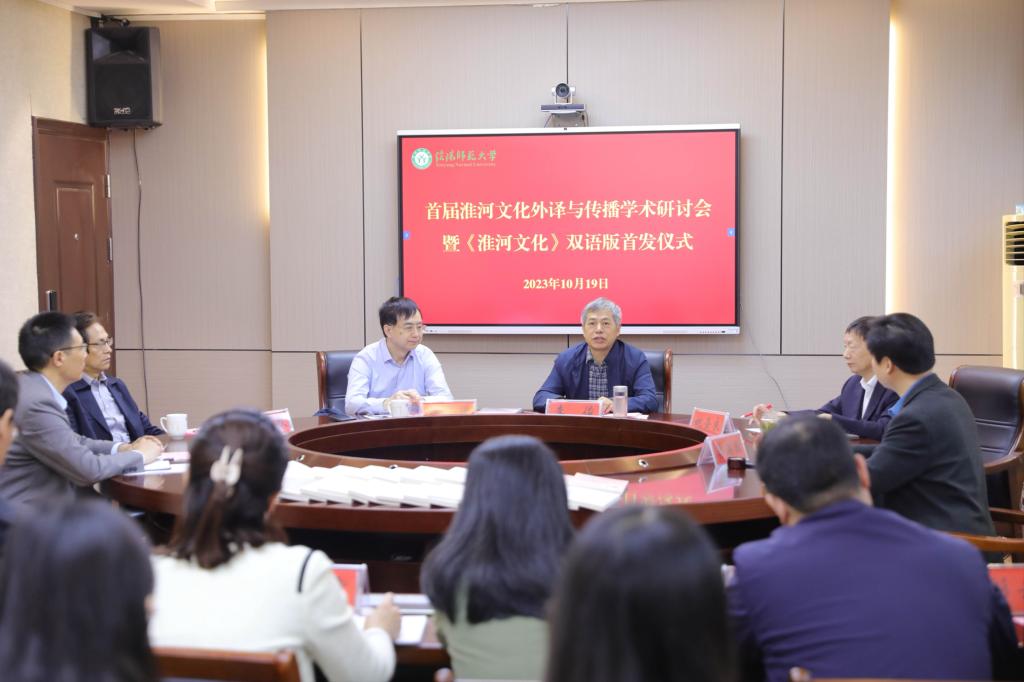 10月19日上午,首届淮河文化外译与传播学术研讨会暨《淮河文化》双语版首发仪式在公司举行。该书由省委外事办一级巡视员杨玮斌教授和365官网体育李俊董事长共同发布。发布会在行政楼436会议室举行,出席本次会议的有365官网体育原社会科学处处长金荣权教授,文公司经理姚圣良教授,外国语公司党委书记陈铭、经理蔡满园、副经理余永锋、章彩云,国际交流合作处副处长王秋霞,社会科学处、团队建设办公室、炎黄学研究中心、河南省淮河文明研究中心相关负责同志,以及《淮河文化》中英文专家组成员和部分师生代表。